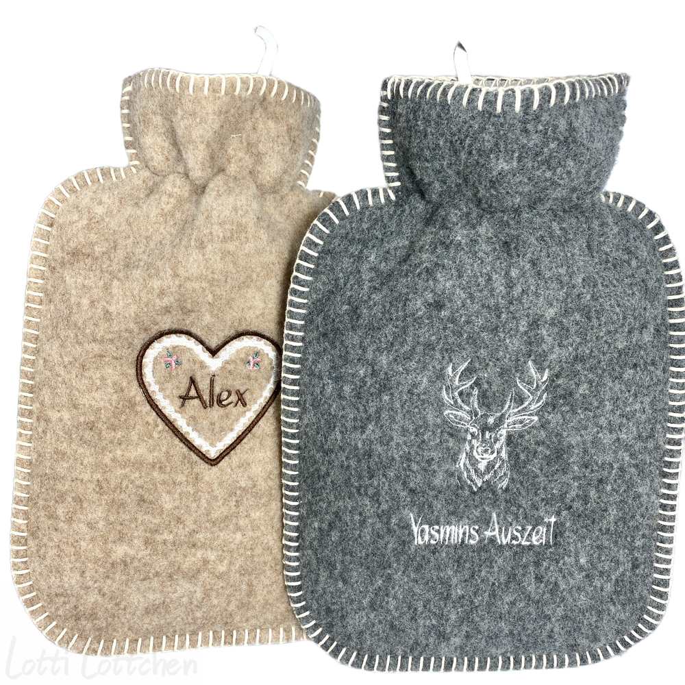 Überdiesen kuscheligen und hochwertig bestickten Wärmflaschenbezug freuen sich nicht nur Oma und Opa. Jeder, der auf Nachhaltigkeit setzt, wird die Eigenschaften von diesem Naturprodukt zu schätzen wissen. Der Bezug aus 100% deutscher naturfarbener Schaf-Schurwolle wird in Deutschland gefertigt, ist ungefärbt und damit frei von Chemikalien. Aufgrund der schmutzabweisenden und isolierenden Eigenschaft von Wolle ist der Wärmflaschenbezug zudem pflegeleicht und ein treuer wärmender Begleiter für die kalten Herbst- und Wintertage. Persönlich bestickt wird dieses Unikat zum ganz besonderen Highlight auf dem Gabentisch.