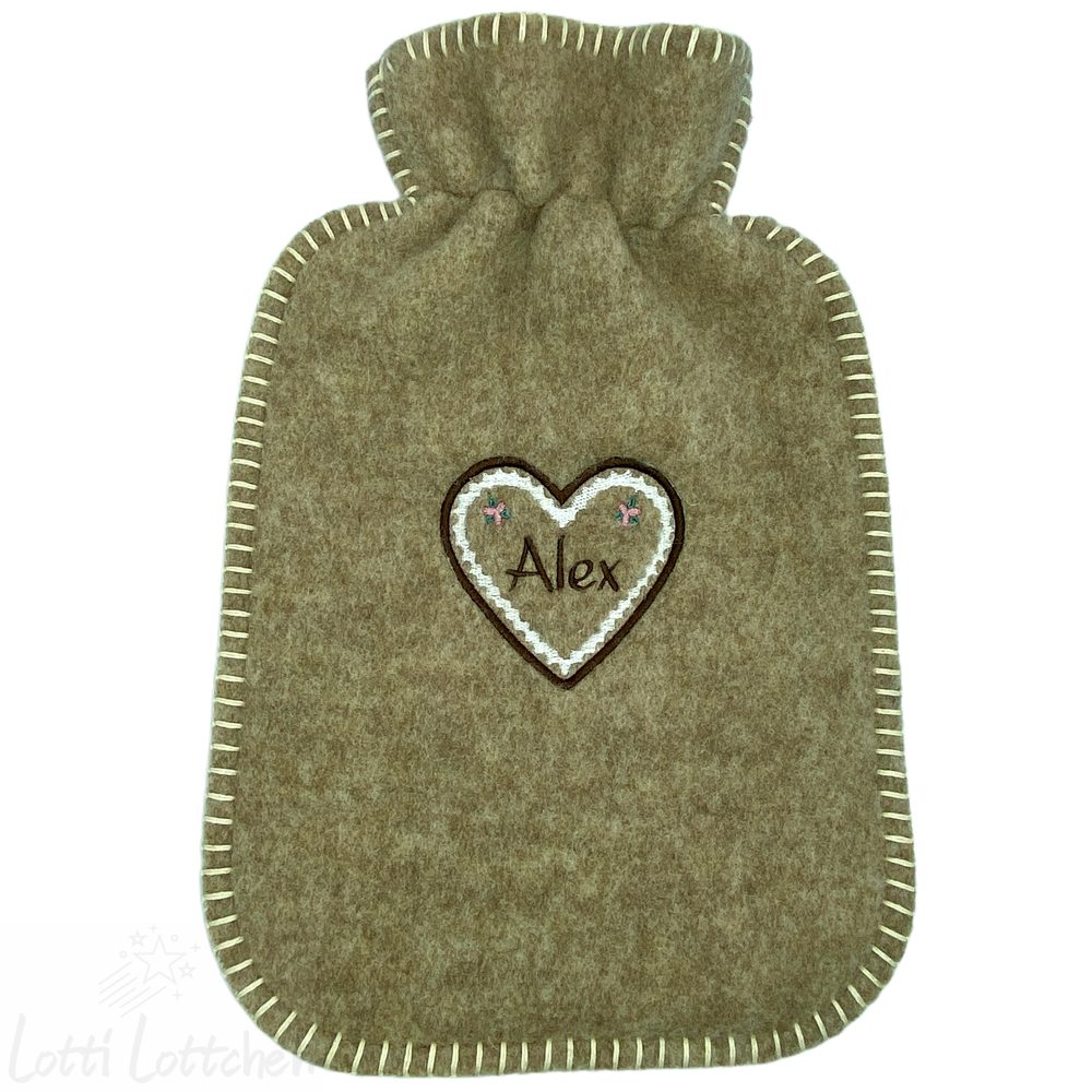 Personalisierte Wärmflasche "Herz" aus Schurwolle