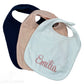 Dieses niedliche personalisierte Lätzchen für kleine Kleckermäuse (bis zum Alter von zwei Jahren) wird mit Namen und auf Wunsch mit zwei kleinen Sternchen oder zwei kleinen Herzchen rechts vom Namen bestickt. Es ist ein wundervolles Geschenk zur Geburt, zur Taufe, zum Geburtstag aber auch für Zwischendurch. Aufgrund der sehr weichen Bio-Qualität ist es angenehm zu tragen. Auch der weiße Klettverschluss ist anschmiegsam. Der doppelt gelegte Stoff sorgt für extra Saugkraft.